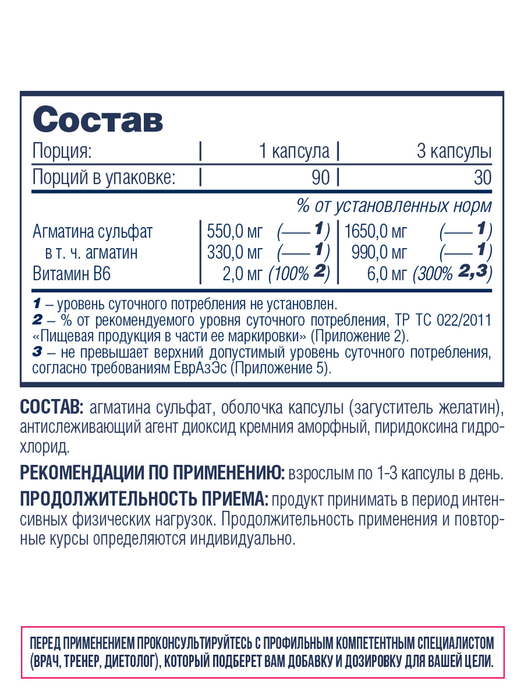 Be First Агматин / Agmatine Sulfate Capsules 550mg 90 cap