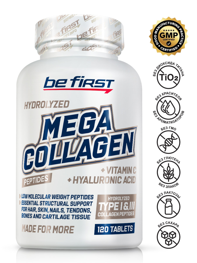 Be first Mega Collagen + hyaluronic acid + vitamin C (коллаген с витамином С и гиалуроновой кислотой) 120 таблеток