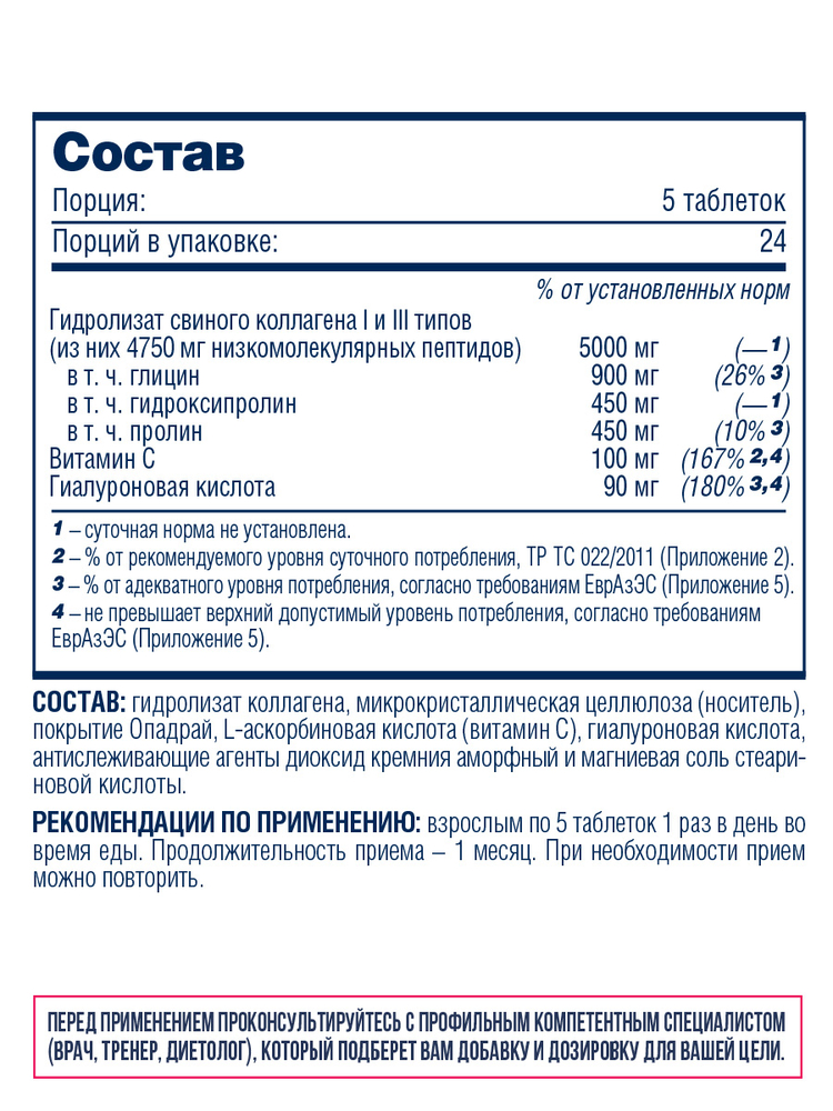 Коллаген в таблетках с гиалуроновой кислотой и витамином С