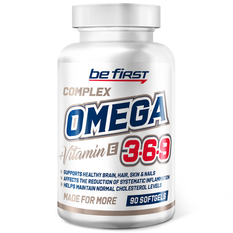 Omega 3-6-9 Be First для питания спортсменов в период интенсивных физических нагрузок, в дополнение к основному рациону, в качестве дополнительного источника полиненасыщенных жирных кислот: Омега-3, Омега-6, мононенасыщенных жирных кислот (Омега-9) и витамина Е, в соответствии с индивидуальной программой тренировок, разработанной для данных видов спорта.
