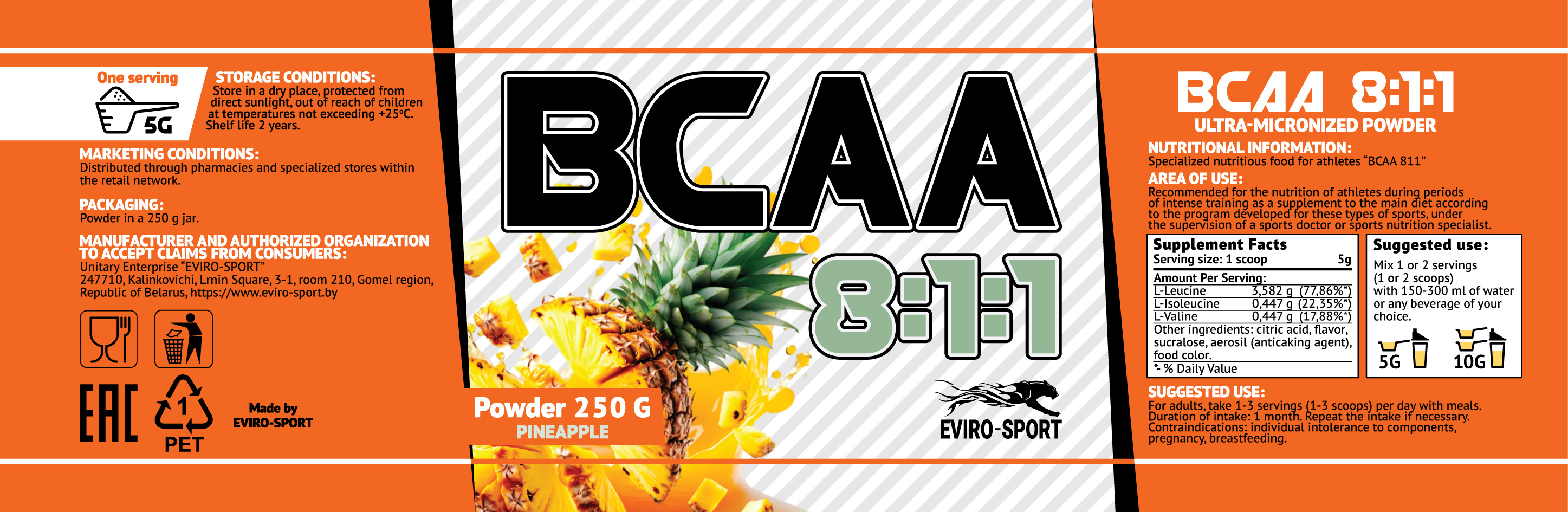 Eviro-Sport BCAA 8:1:1 Ананас - Тропическая Энергия для Мышц!