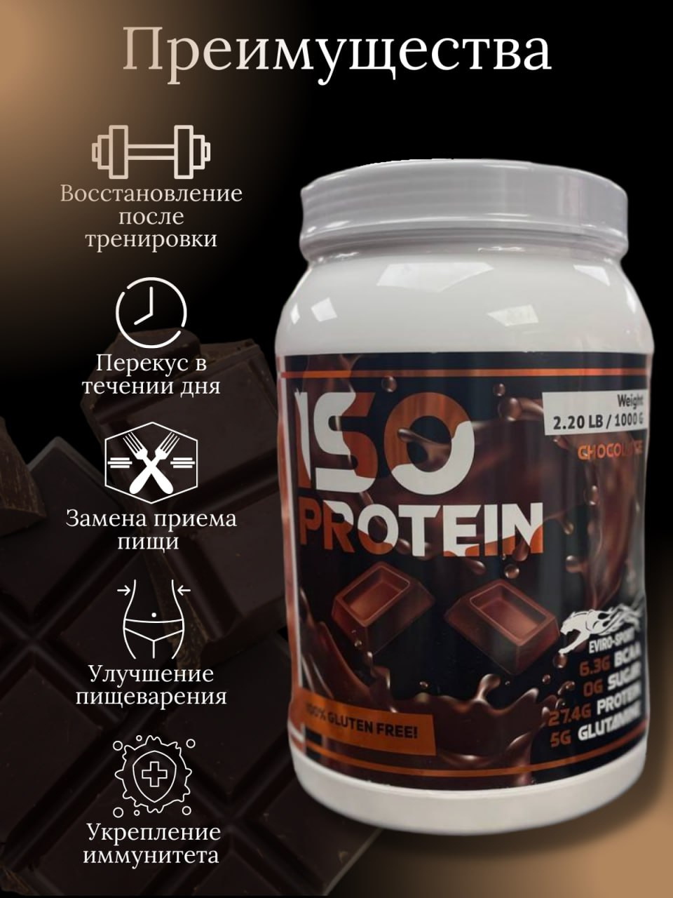 Коктейль ISO PROTEIN со вкусом Шоколада от eviro-sport.by незаменимый помощник при диетах на похудение и удержания мышечной массы во время «сушки».