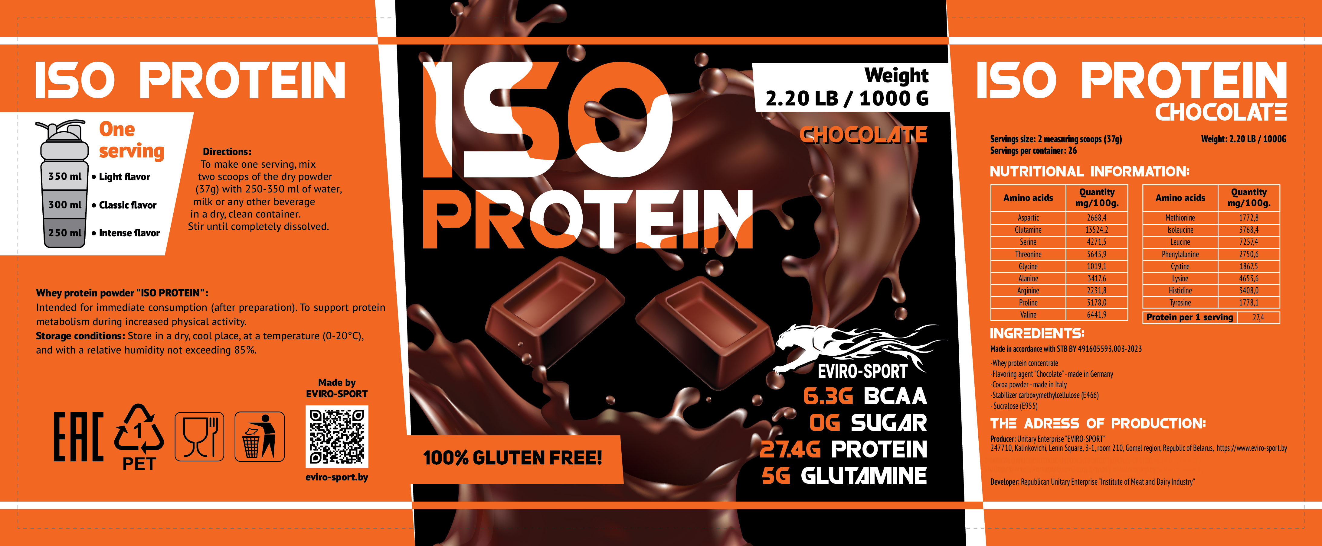 Купить протеин или заказать доставку белка EVIRO Iso Protein со вкусом шоколада можно в Минске с доставкой в Гродно, Гомель, Могилев, Витебск, Брест.