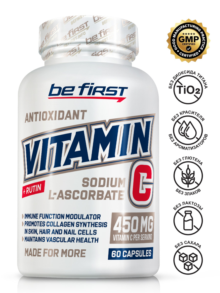 Vitamin C + Rutin (натрия L-аскорбат + рутин) от Be First — 60 капсул | Мощный антиоксидантный комплекс для иммунитета и сосудов